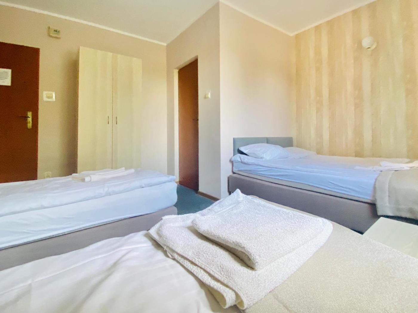 Pokój Czteroosobowy z łazienką. The quadruple room features an electric kettle, as well as a private bathroom boasting a shower. The unit has 3 beds. Pokój Czteroosobowy - 4 osobowy. Powierzchnia pokoju ok.: 15 mkw.