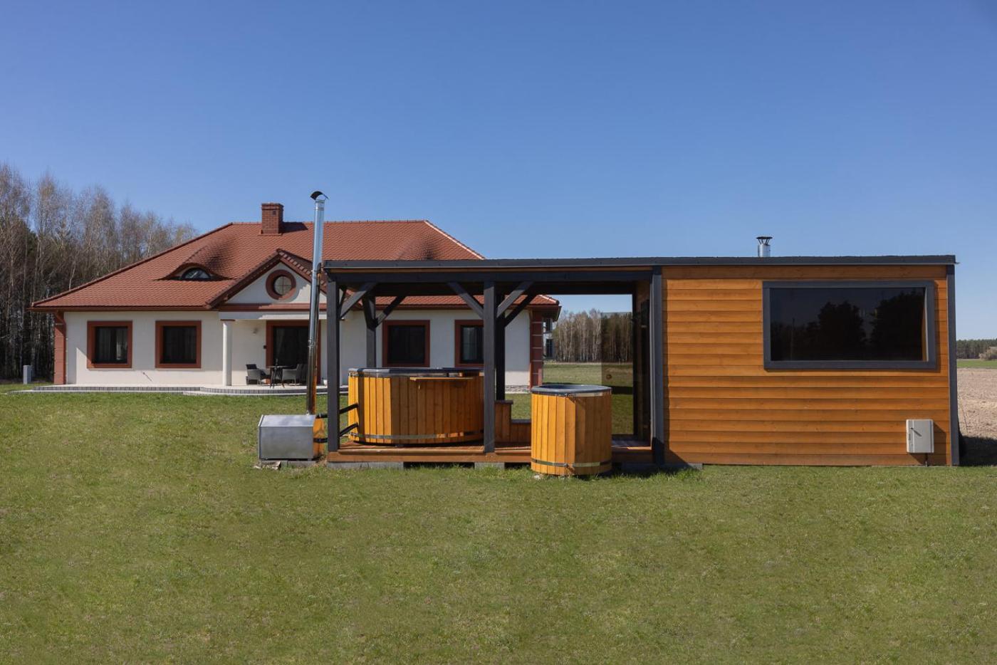 Willa typu Deluxe. This villa boasts a spa bath, sauna and fireplace. Featuring a private entrance, this air-conditioned villa consists of 1 living room, 4 separate bedrooms and 1 bathroom with a shower and a bidet. Guests will find a stovetop, a refrigerator, a dishwasher and kitchenware in the kitchenette. The villa also offers a barbecue. The spacious villa provides a washing machine, a tea and coffee maker, a seating area, a flat-screen TV with satellite channels, as well as river views. The unit offers 5 beds. Willa - 10 osobowy. Powierzchnia pokoju ok.: 250 mkw.