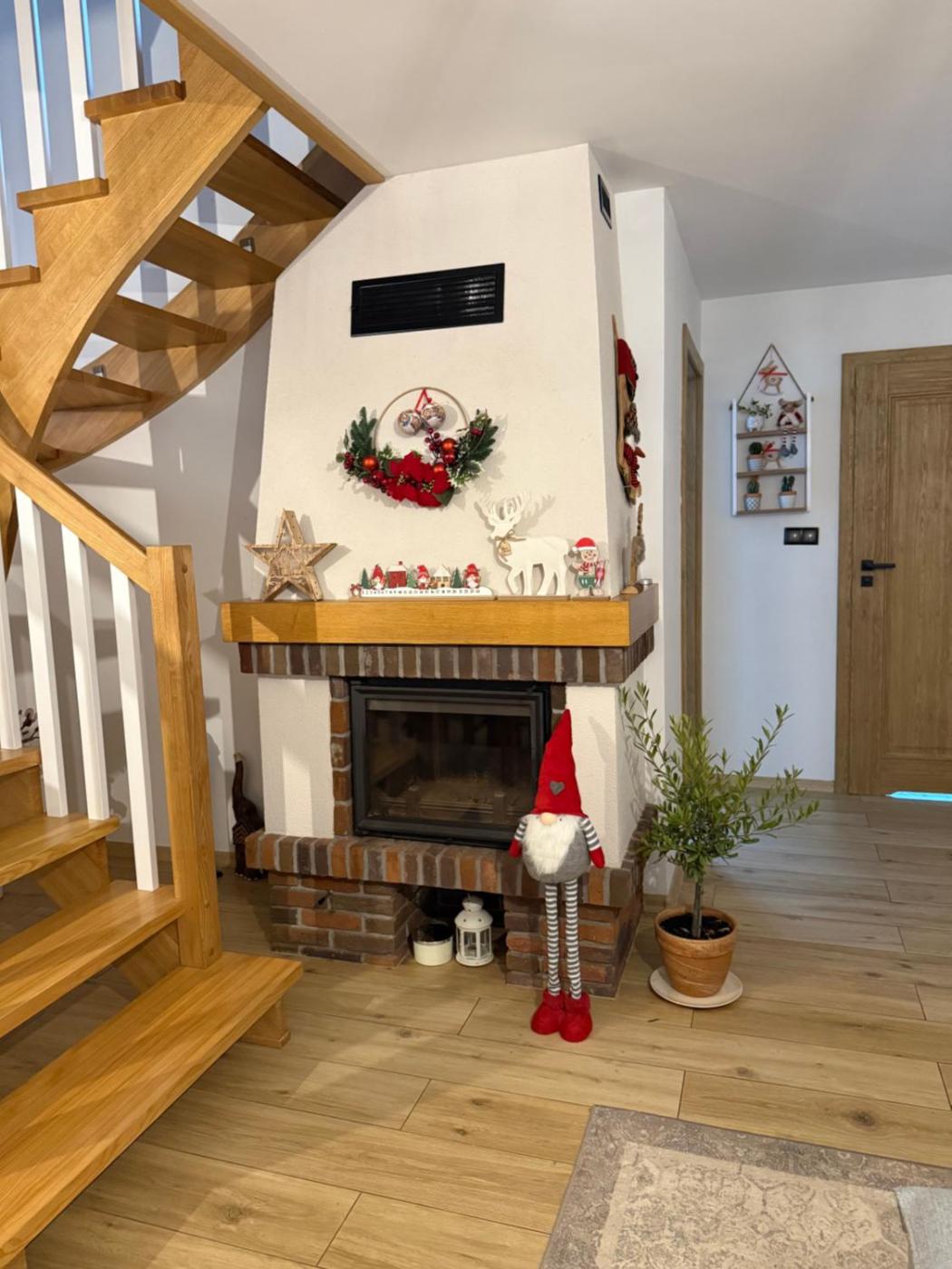 Dom z 3 sypialniami. The fireplace is the standout feature of this holiday home. Guests will find a stovetop, a refrigerator, kitchenware and an electric kettle in the kitchen. The holiday home also comes with a barbecue. Boasting a terrace with garden views, this holiday home also features a private entrance and a flat-screen TV with cable channels. The unit has 5 beds. Dom wakacyjny - 9 osobowy. Powierzchnia pokoju ok.: 80 mkw. ;