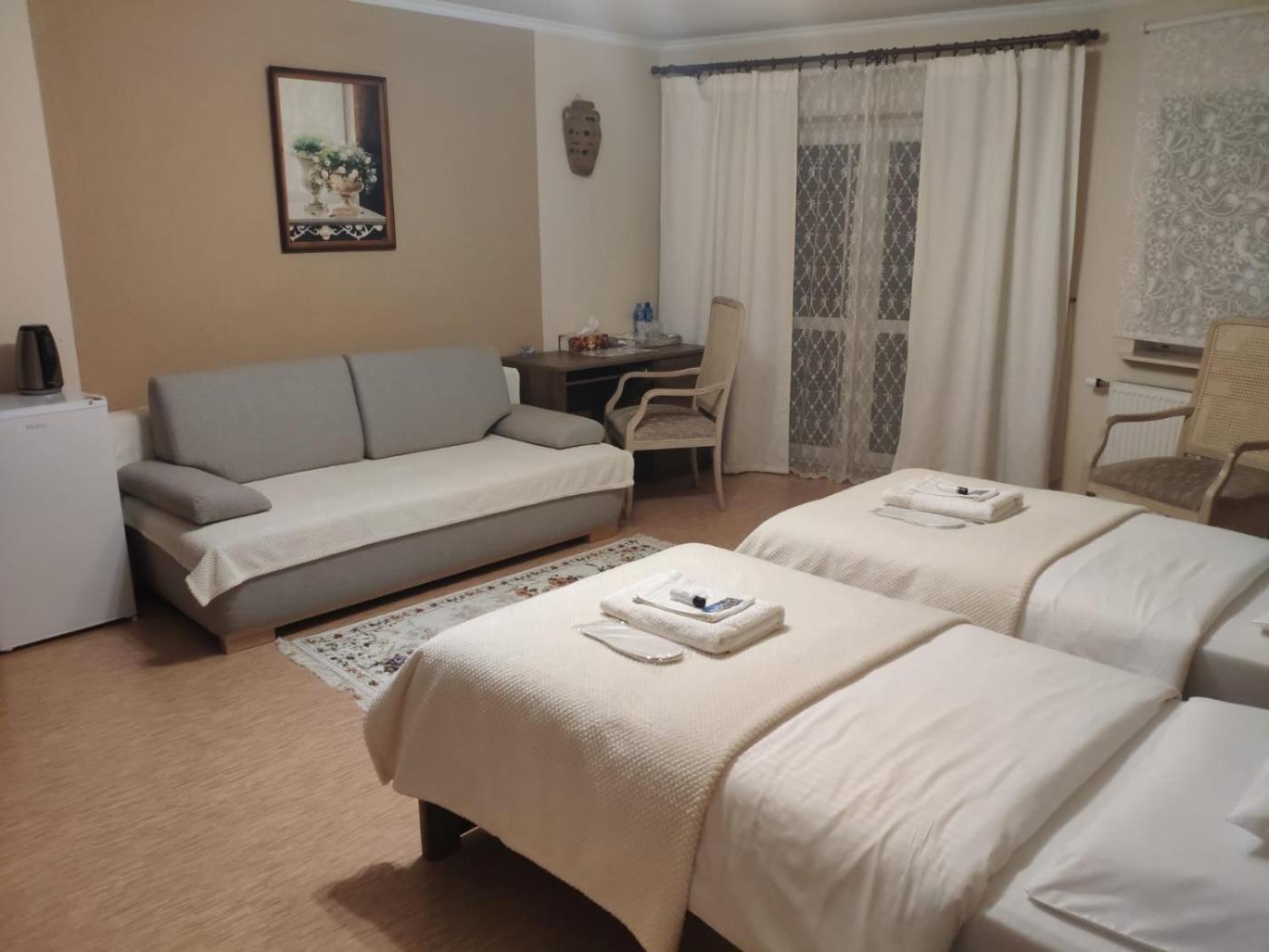 Pokój Dwuosobowy ze wspólną łazienką. Featuring free toiletries, this double room includes a shared bathroom with a shower, a hairdryer and slippers. The double room features a wardrobe, a sofa, parquet floors, heating and a flat-screen TV with streaming services. Pokój Dwuosobowy - 2 osobowy. Powierzchnia pokoju ok.: 13 mkw.