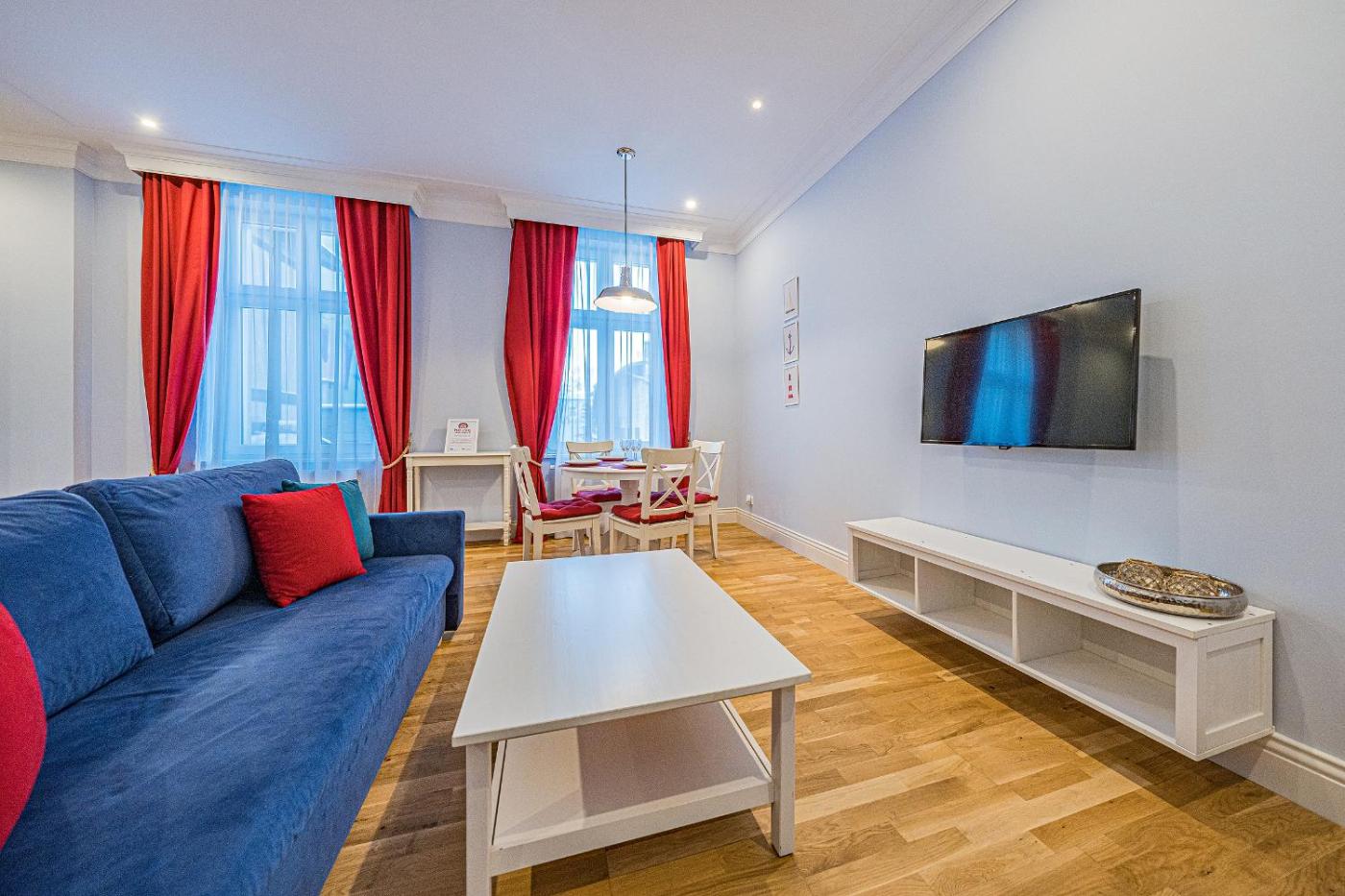 Apartament typu Deluxe. This apartment comes with 1 living room, 1 separate bedroom and 1 bathroom with a shower and free toiletries. Meals can be prepared in the well-fitted kitchenette, which features a stovetop, a refrigerator, kitchenware and a microwave. The apartment features a washing machine, a wardrobe, an electric kettle, parquet floors and a flat-screen TV with cable channels. The unit has 2 beds. Apartament - 4 osobowy. Powierzchnia pokoju ok.: 50 mkw. ;
