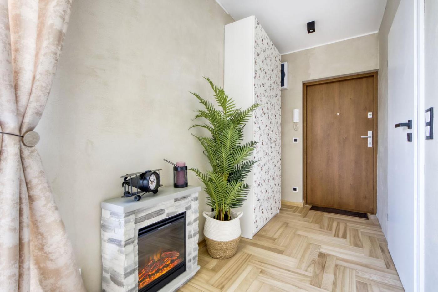 Apartament typu Deluxe. The fireplace is a top feature of this apartment. The apartment has 1 bedroom and 1 bathroom with a shower and free toiletries. The well-fitted kitchen features a stovetop, a refrigerator, a dishwasher and kitchenware. Boasting a balcony with city views, this apartment also features a washing machine and a flat-screen TV. The unit has 1 bed. Apartament - 3 osobowy. Powierzchnia pokoju ok.: 30 mkw.